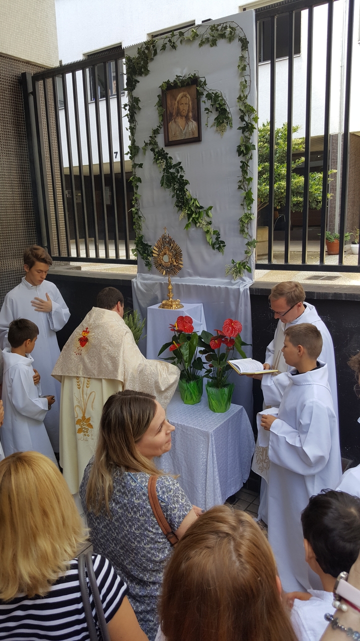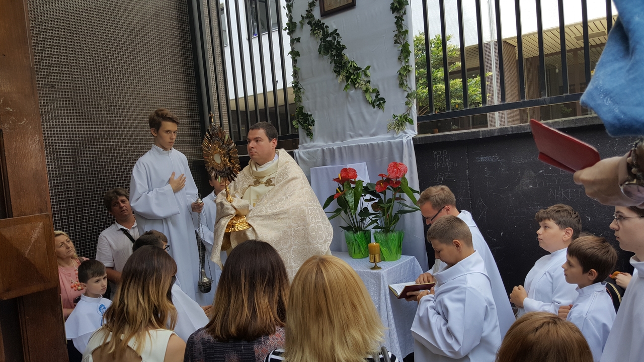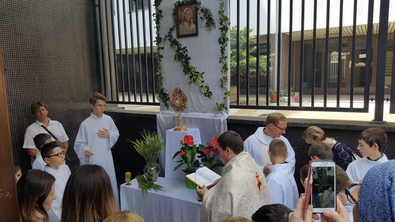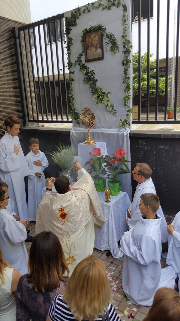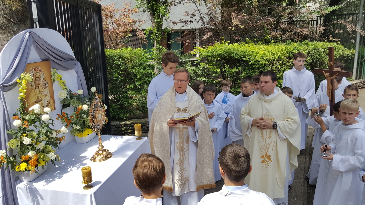 Trzeciego czerwca 2018 roku obchodziliśmy jedno z najważniejszych dla kościoła katolickiego świąt, uroczystość Najświętszego Ciała i Krwi Chrystusa. Tego dnia publicznie wyznajemy wiarę w obecność Chrystusa w Najświętszym Sakramencie, a tym samym manifestujemy naszą wiarę poza miejscami sakralnymi. I my przeszliśmy z monstrancją w procesji do czterech ołtarzy, przy których odczytano fragmenty Ewangelii. Zapraszamy na naszą stronę internetową do obejrzenia fotorelacji z tego wydarzenia.